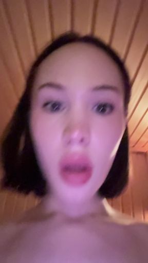 Petite trans girl stroking in a public sauna till cum - almost caught! (extreme public)